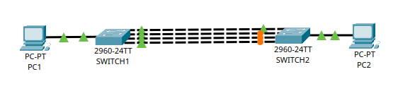 From the example above, having multiple links connecting two routers sounds like a great idea in terms of redundancy but in practice it is not that great. What would happen if I took two switches and plugged in redundant links between them. A broadcast storm would happen, where an excessive amount of broadcast traffic overwhelms a network device such as a switch. When a broadcast storm happens, a broadcast is sent and loops endlessly with no end in sight consuming a lot of the switch’s CPU. I put a photo below and as you can see Switch1 is on the left and Switch 2 is on the right.